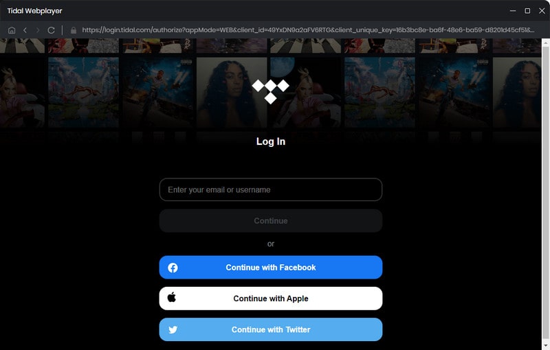 SCHRITT 1 Öffnen Sie Tidabie und melden Sie sich bei Ihrem Tidal-Konto an