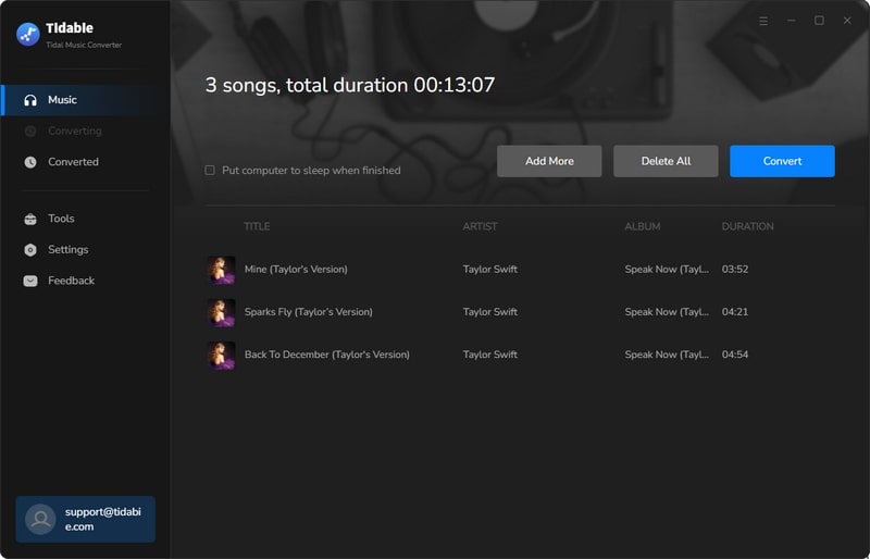 You may be confused about another option, "Add More". It's designed for users who prefer to download more playlists at once. When clicking on it, the selected songs will be added to a to-be-downloaded task list. After that, you can add more songs from other playlists. Then navigate to the "task list" button in the top right and perform the conversion in one batch.